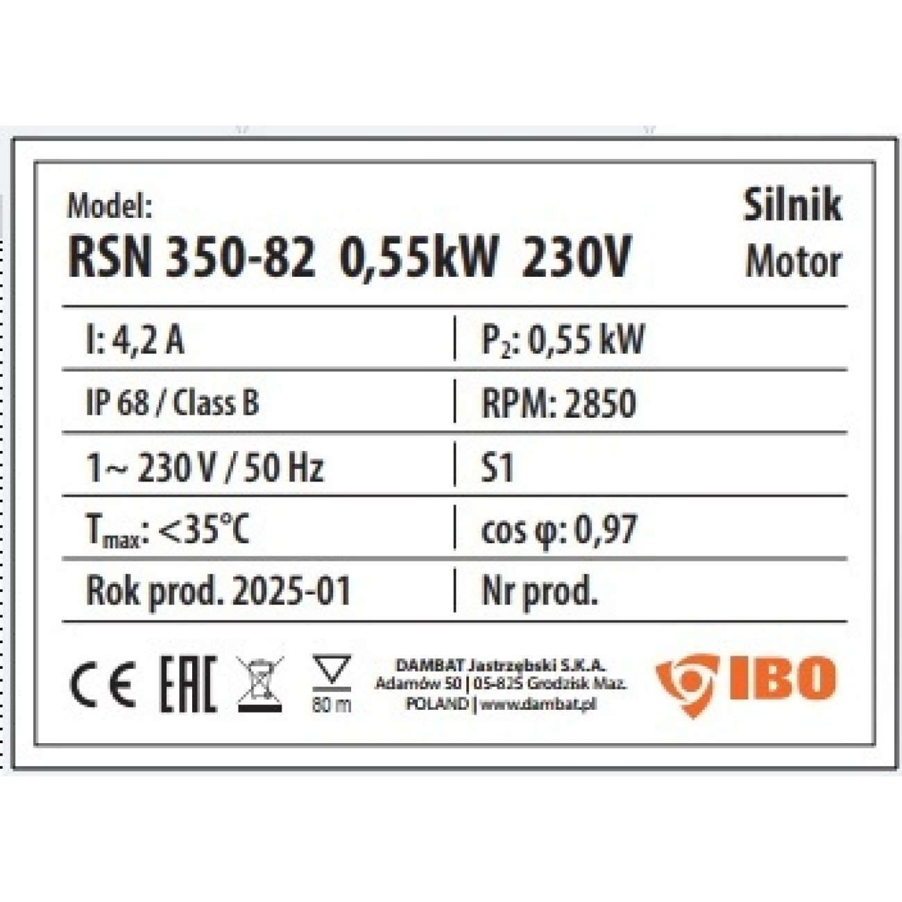 Pompa submersibila IBO RSN 350-82 – Rezistenta la nisip, putere 0.55kW"