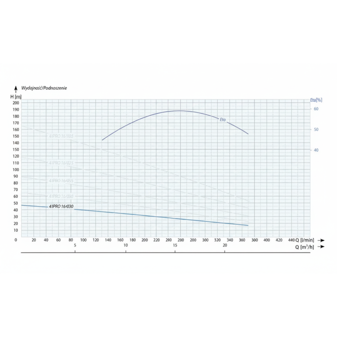 Pompa IPRO 16-030 este un model multietajat de 4 inch (diametru exterior de 99 mm), ideal pentru instalarea în puțuri cu un diametru interior minim de 115 mm .