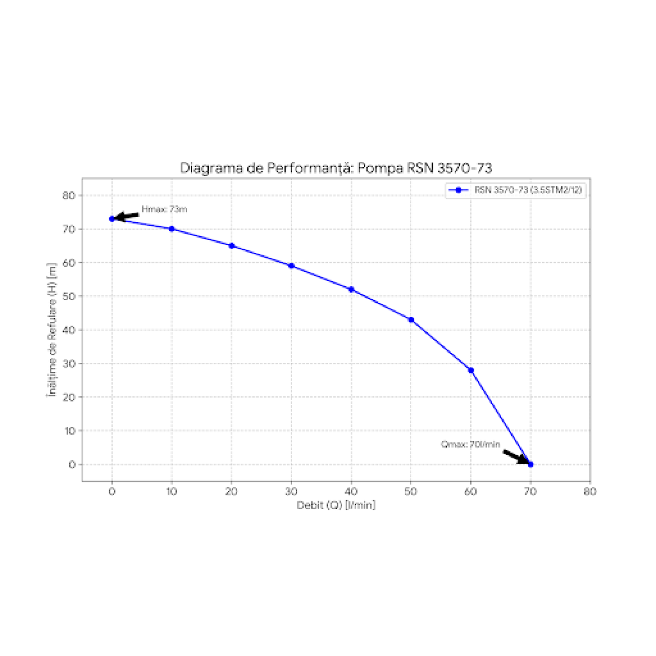 Putere & Presiune: Cu un debit de 70 Litri/Minut și o înălțime maximă de pompare de 73 Metri (7.3 Bar) , este perfectă pentru alimentarea completă a unei case (bucoătărie, 2 băi) și pentru irigarea grădinii.