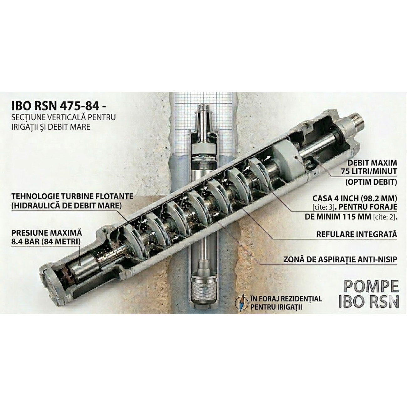 Pompă Submersibilă IBO RSN 475-84 - Rezistentă la Nisip (8.4 Bar)