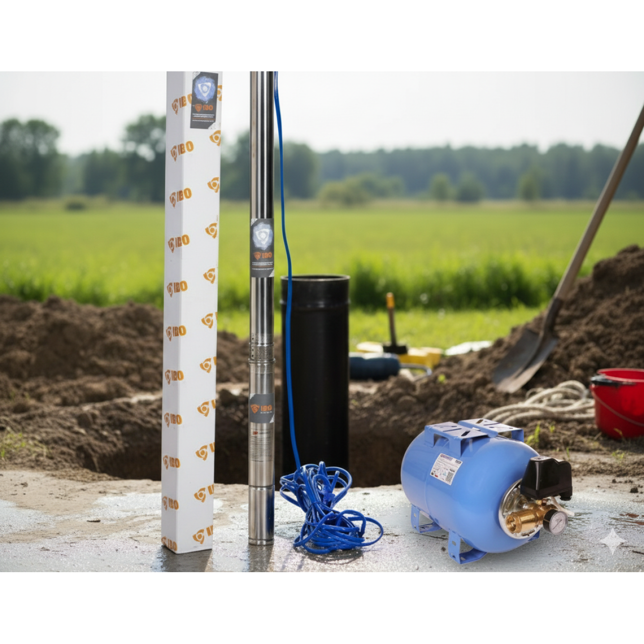 Set Hidrofor Complet: Pompă Submersibilă IBO RSN 350-110 (3") + Vas Expansiune + Accesorii