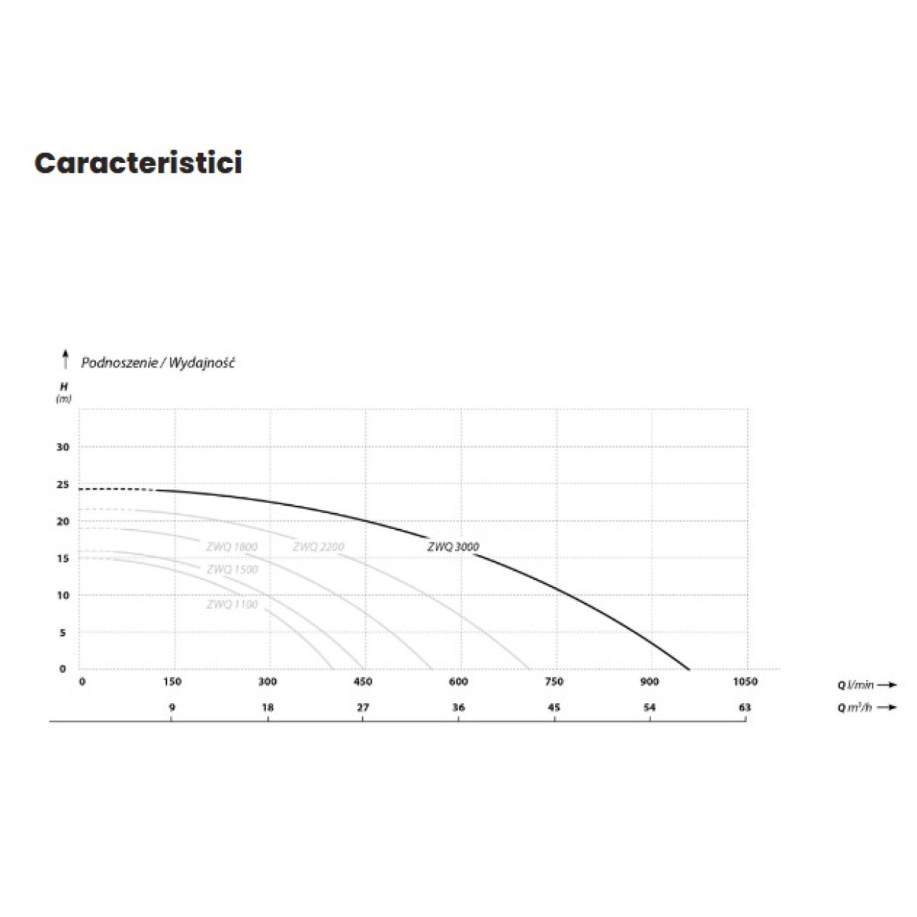 Debit și Ridicare Impresionante: Capacitate maximă de 950.0 litri/minut (57 m³/h) și o înălțime de ridicare (coloană) de până la 24.0 M.